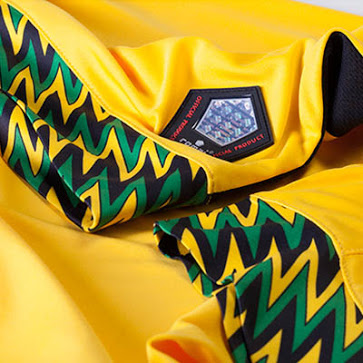 The new Jamaica 2015 Copa America Shirt is yellow with a modern crew-neck collar. Unique applications on the area below the collar, the sleeve cuffs and the lower part of the new Jamaica 2015 Home Shirt boast the colors of the Jamaican flag: black, green and yellow.